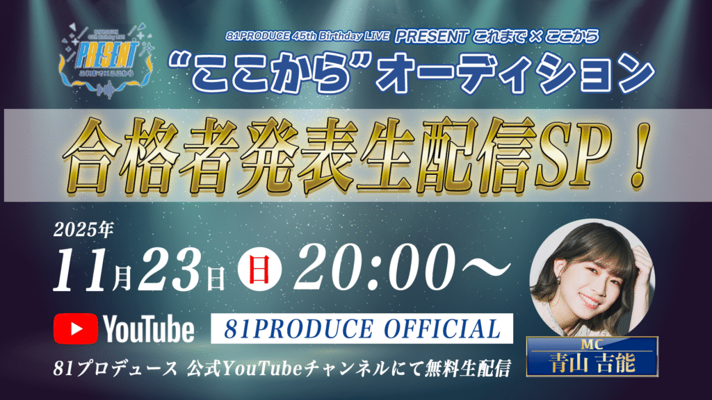 「81PRODUCE 45th Birthday LIVE『PRESENT これまで×ここから』」のライブコンセプトにならい、現在発表されている48名の出演者のほか、「ここから」始まる未来を担う若手キャストのライブ出演者を皆さまの投票で決定するオーディション企画。