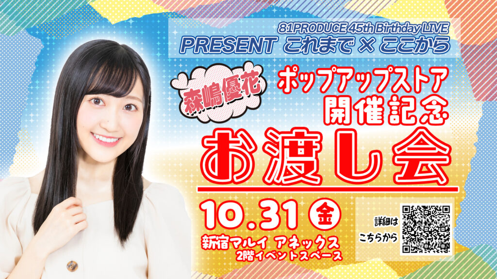 ポップアップストアのオープンを記念し、開店初日である10/31(金)、ライブに出演予定の森嶋優花がポップアップストアにて限定イベントに出演します。